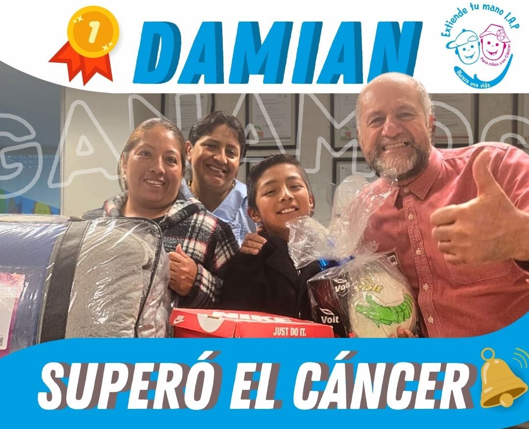 Conoce la historia de Damian un chico que logro vencer el cáncer de testículo de seno endodérmico con la edad de 1 año 7 meses. Pero tras 4 sesiones de quimioterapia, 8 años de revisión y mucha fortaleza de su parte logro triunfar sobre la enfermedad.